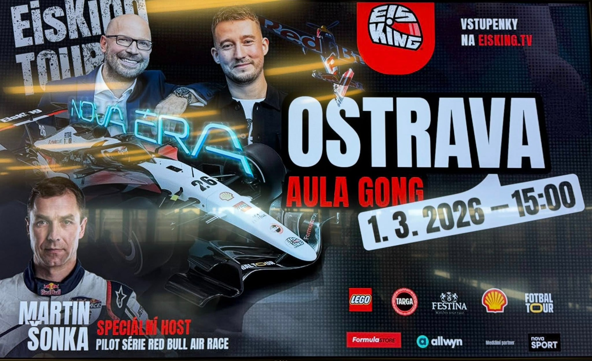 Atmosféra v ostravských Dolních Vítkovicích v neděli 1. března po 15 hodině připomínala napětí těsně před startem Velké ceny. Do multifunkční auly Gong už potřetí dorazila populární EisKing Tour, která v rámci své 23. zastávky nabídla fanouškům motorsportu hluboký pohled do zákulisí i technické detaily nadcházející sezóny. Duo komentátora Števa Eiseleho a automobilového závodníka Josefa Krále, které doplnila i moderátorka a jejich kolegyně Karolína Bulisová, během tříhodinové show okomentovalo zajímavé novinky ze světa Formule 1 nebo předvedlo i showcar vítězného McLarenu přímo na pódiu.
